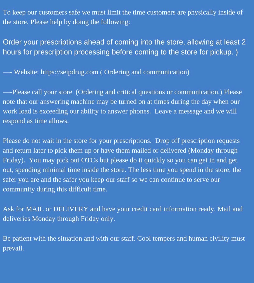 Nuestra compromiso a la atención del paciente y su salud es nuestra primera prioridad aquí en Seip Drug | NY Mills.